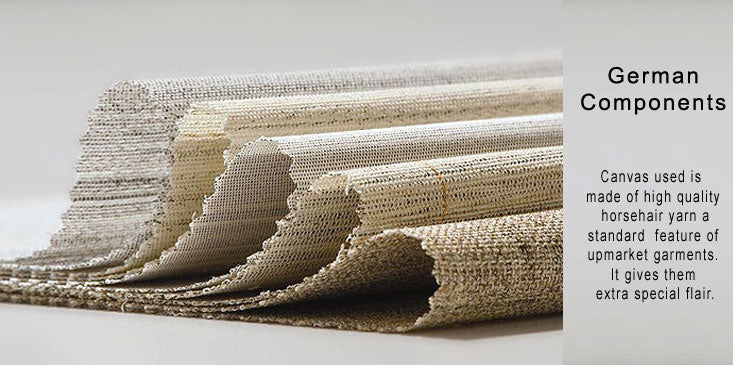 Traditional Half Canvas Construction - where hand stitching of hair canvas to the front of the suit jacket is involved , the lapels roll naturally as they should , no bubbling on the lapels due to no fuse on that area.