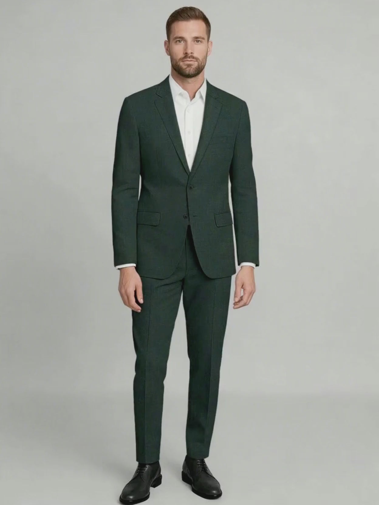 Planning for a resort this summer? Our Dark Bottle Green Linen Suit will be a perfect pick because it's not about kidding around when it comes to styling. Crafted from linen, the lightweight summer fabric features a unique slubby texture that will create interest and become the center of attraction. Whether you're attending an elegant soirée, a prestigious wedding, or any occasion where making a statement matters, this jacket is your ultimate companion.