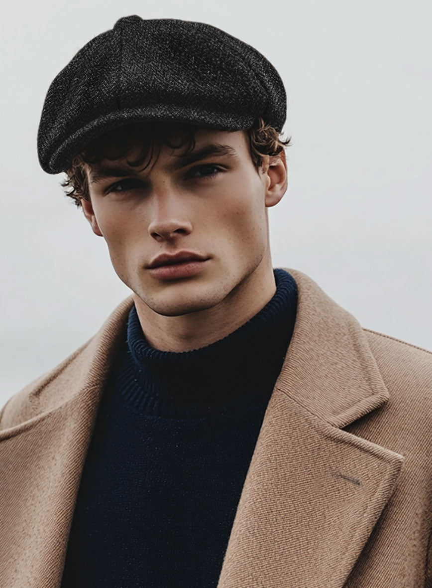 Inspired by the Thomas Shelby's style from Peaky Blinders, the newsboy tweed cap, also known as English Baker Boy Cap, with its vintage charm is sure to exude a classic elegance when paired with any outfit.