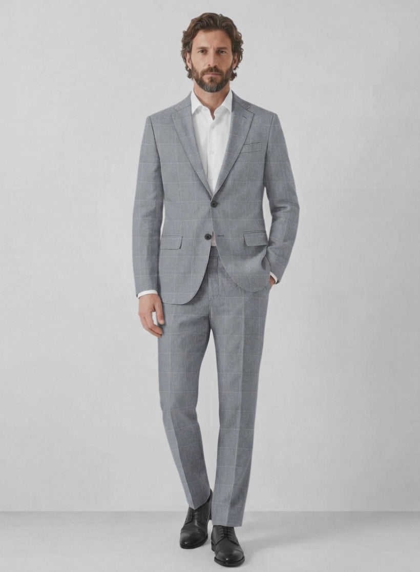 Add sophistication to your attire with a touch of glamour with our Solbiati Linen Aquina Suit that promises nothing but elegance. Crafted with linen, our suit is woven in a checks pattern that uplifts your strong identity. Also, the gray color gives you a handsome look that steals the spotlight off of everyone. So make ...
