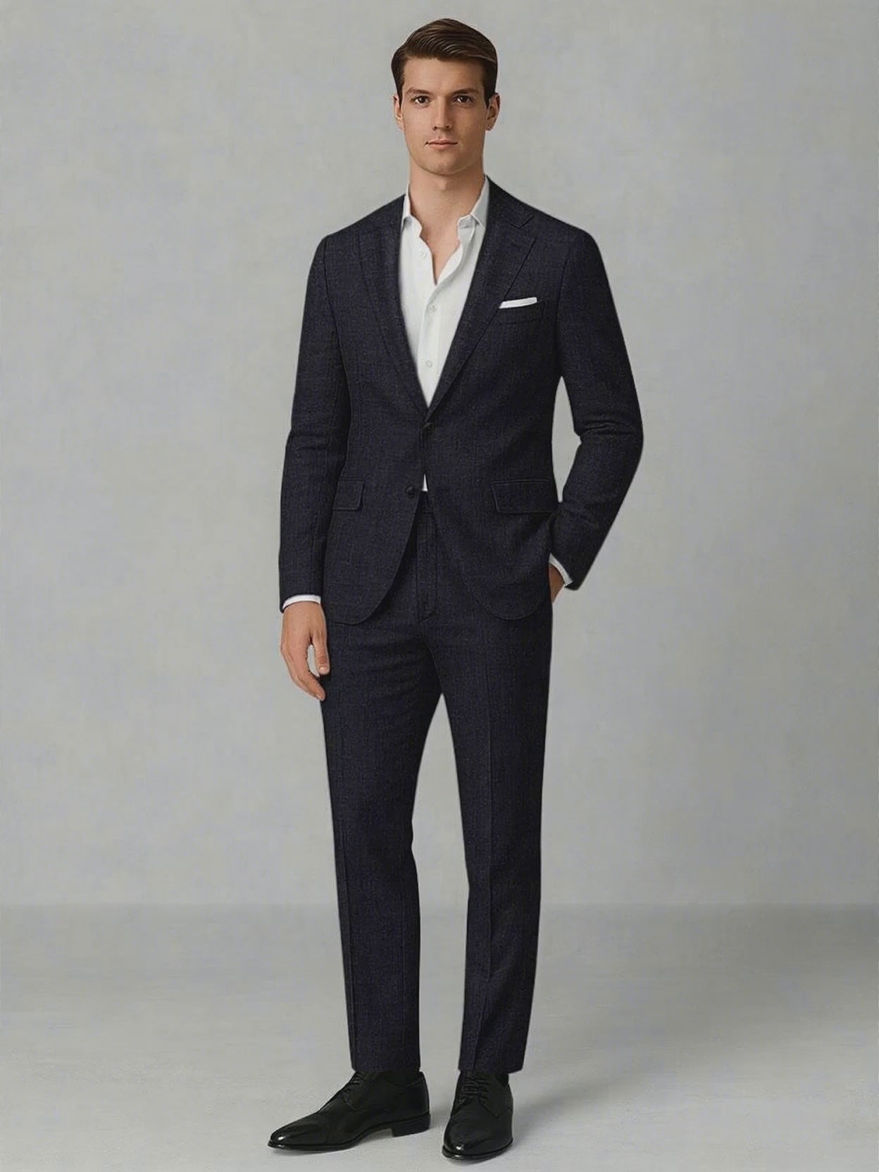 A true hallmark of exclusive refinement, the Italian Linen Deep Navy Suit stands as the pinnacle of luxury, combining the finest linen with an impeccable tailored fit. Crafted from pure linen, this suit embodies sophisticated charm with its rich, deep blue hue and flawless drape. The breathable fabric ensures effortless comfort, making it the ideal ...