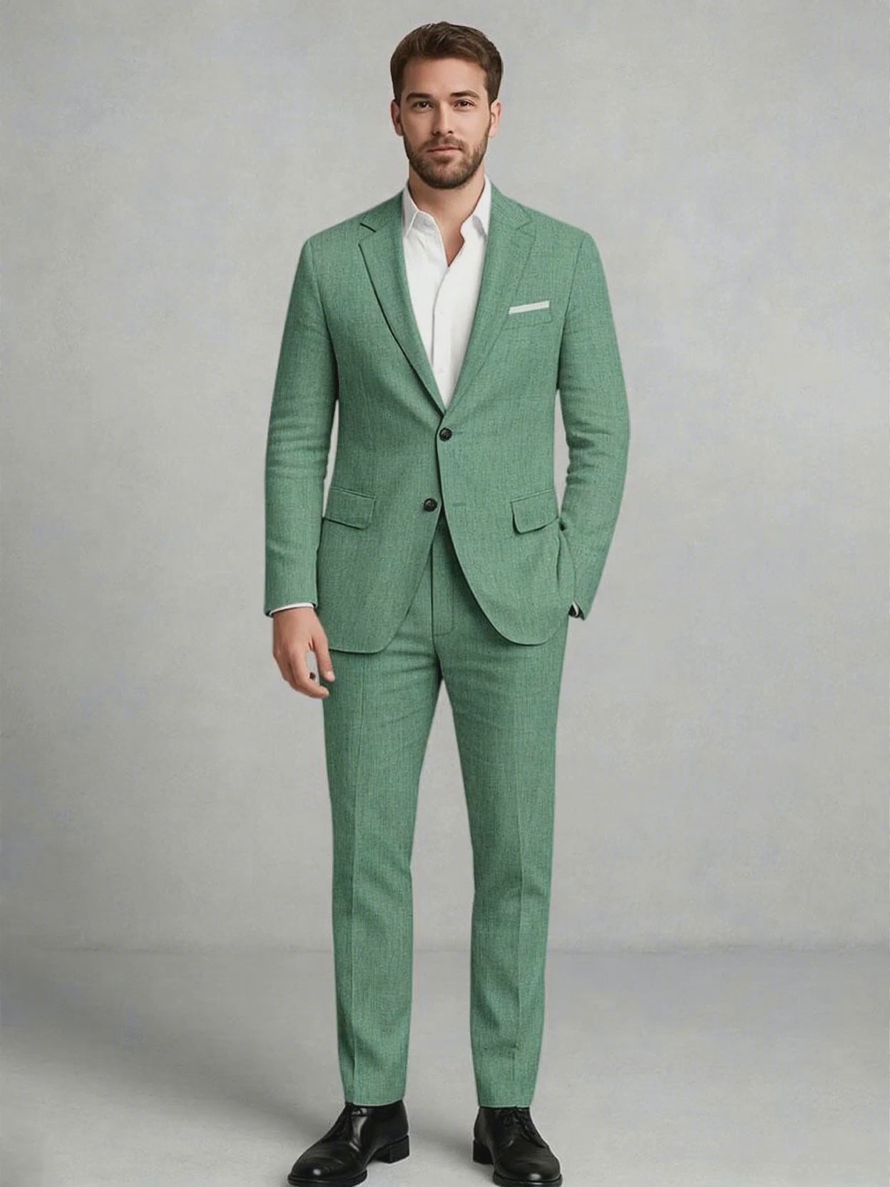 Where freshness meets finesse, our Italian Linen Fern Green Suit is tailored from pure linen, offering a serene blend of lightness and structure. The calm green tone mirrors nature’s poise, while the fabric’s breathable weave ensures composure in every moment. Designed for sunlit affairs and refined leisure, it’s an ode to effortless modern grace.