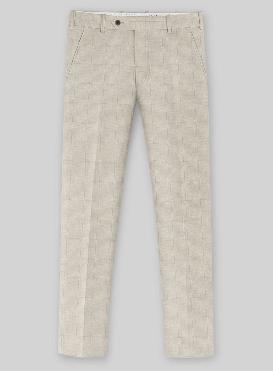 Measured elegance begins at the foundation with our Italian Wool Lycra Norvel Pants. Cut from a luxurious virgin wool and lycra blend, these beige check pants offer supple softness paired with subtle flexibility for day-long composure. The understated check pattern adds visual texture while maintaining versatile clarity. Fluid in movement yet firm in structure, they are perfectly suited for corporate environments, ceremonial functions, smart travel wardrobes, and distinguished seasonal dressing where comfort meets cultivated precision.