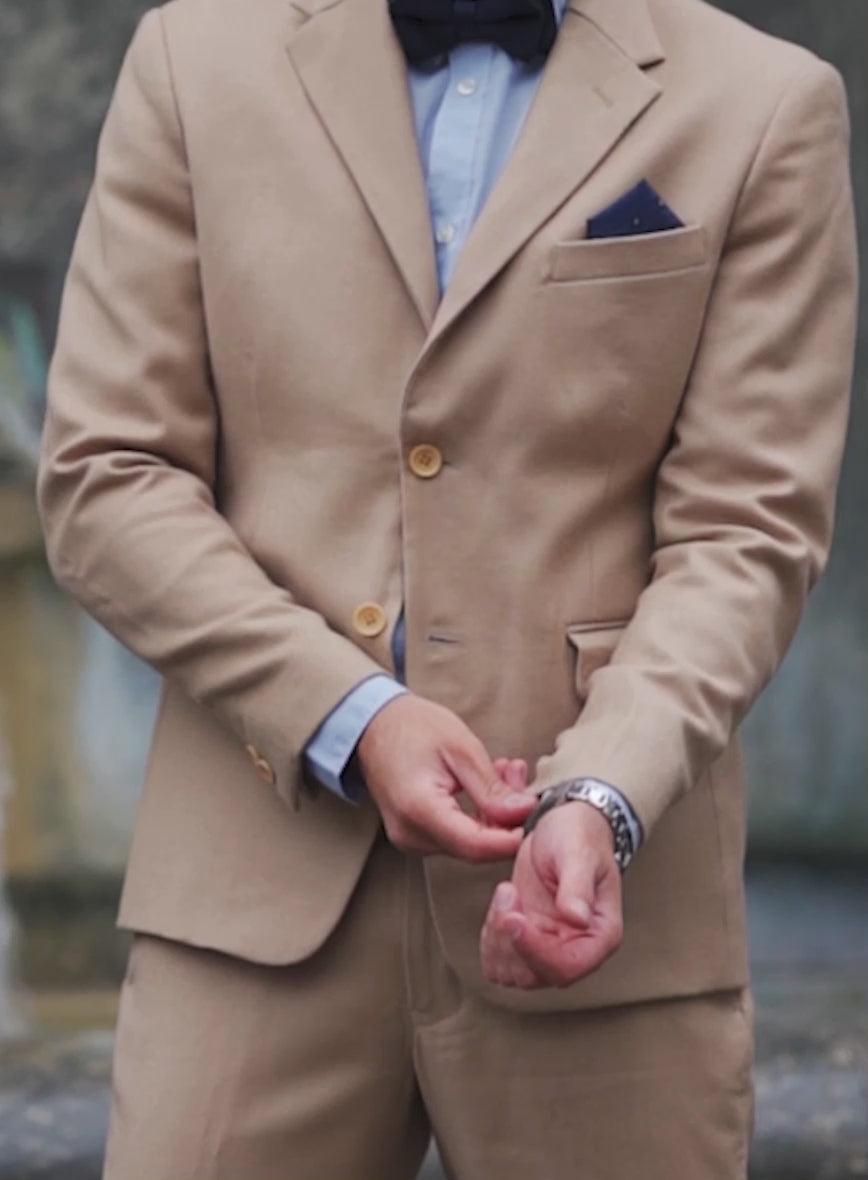 Give your wardrobe a retro feel with our Naples Champagne Tweed Suit. Crafted from soft wool fibers, it has an everlasting appeal and offers exceptional comfort. The solid champagne color exudes a classic look that you can always rely on, complemented by stylish modern touches that you'll love. It's perfect for weddings, semi-formal summer outings, or making a statement at the office.
