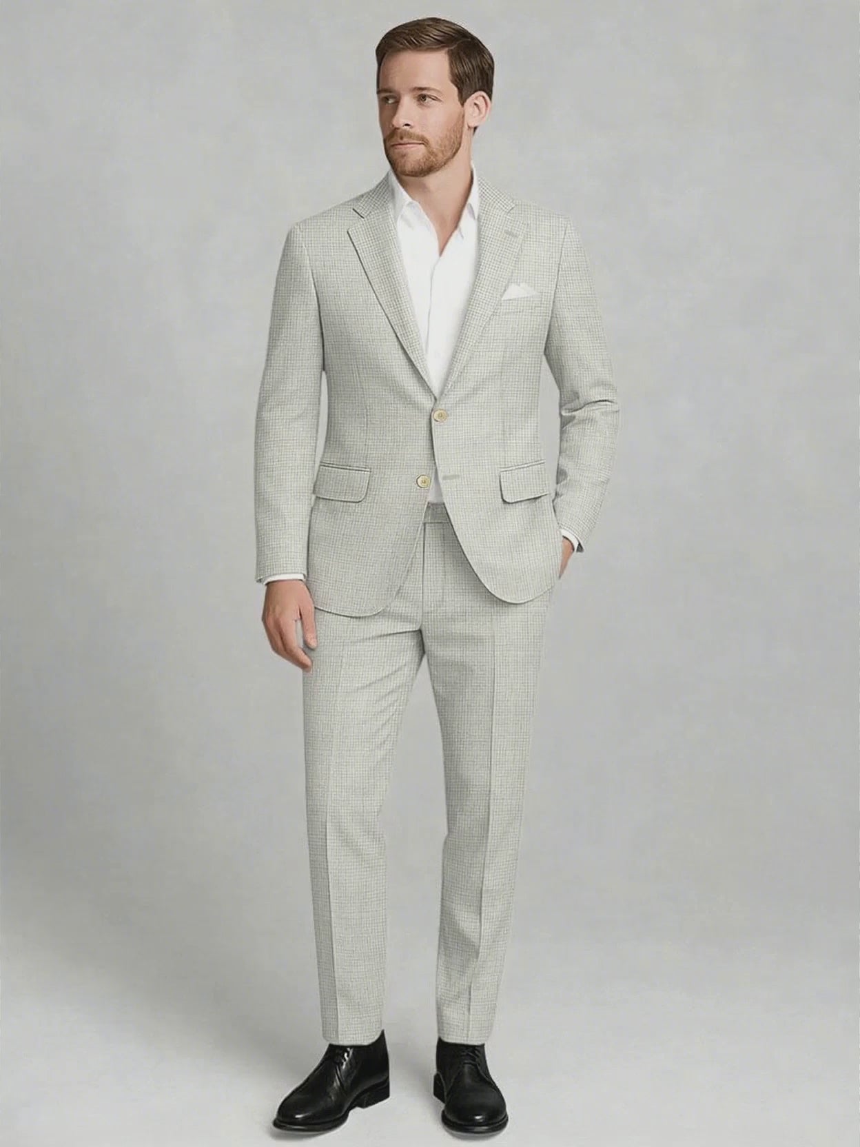 The reinvention of refinement the Napolean Delviro Mini Houndstooth Gray Wool Suit captures a dialogue between heritage and avant-garde design. Tailored from a luxurious and soft wool blend, this masterpiece reveals a gentle gray canvas enlivened by an intricate mini houndstooth pattern that exudes quiet sophistication. Its supple texture and refined weave elevate comfort into an art form, embodying the perfect harmony of tactile indulgence and timeless design. Ideal for business meetings, daytime receptions, or gallery evenings where grace is measured in restraint.