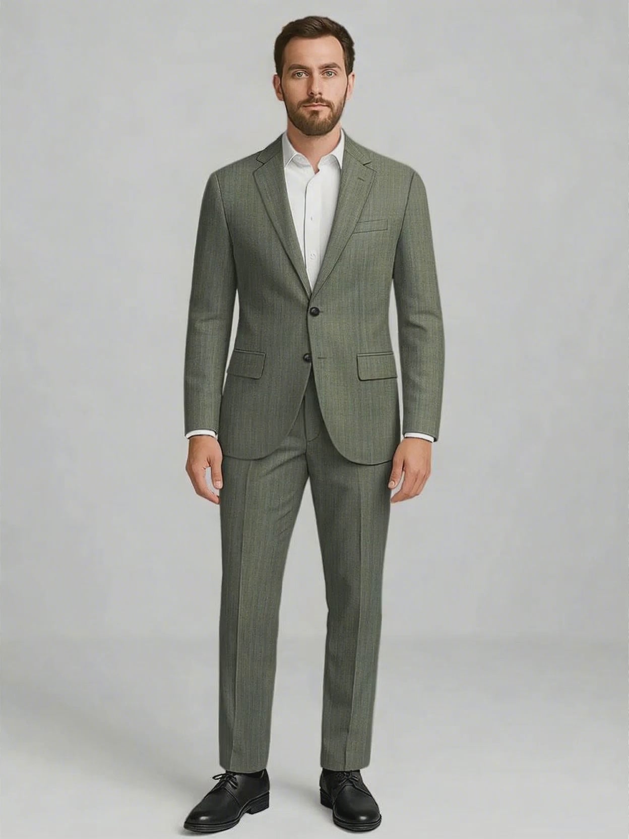 Redefine your essentials with the Napolean Lurvani Herringbone Mist Wool Suit. Expertly woven from pure wool, this suit pairs a cool mist hue with a crisp herringbone pattern, offering a nod to timeless tradition while embracing a modern edge. Designed for comfort, breathability, and effortless style, it delivers a polished silhouette that moves seamlessly from daytime meetings to evening gatherings.