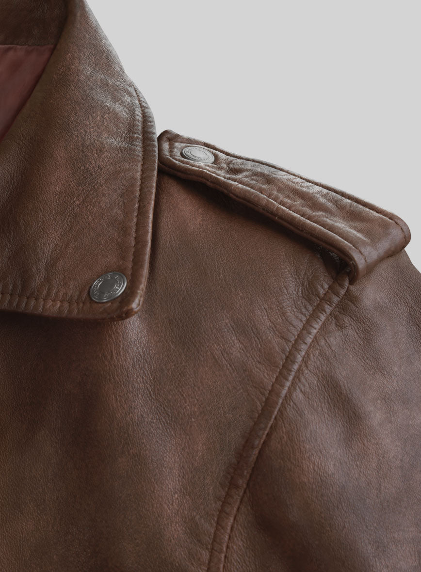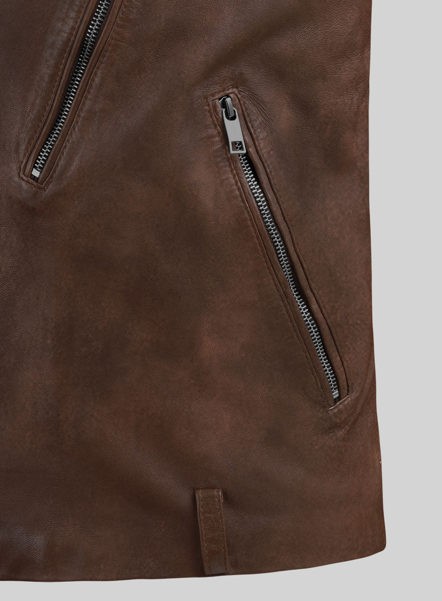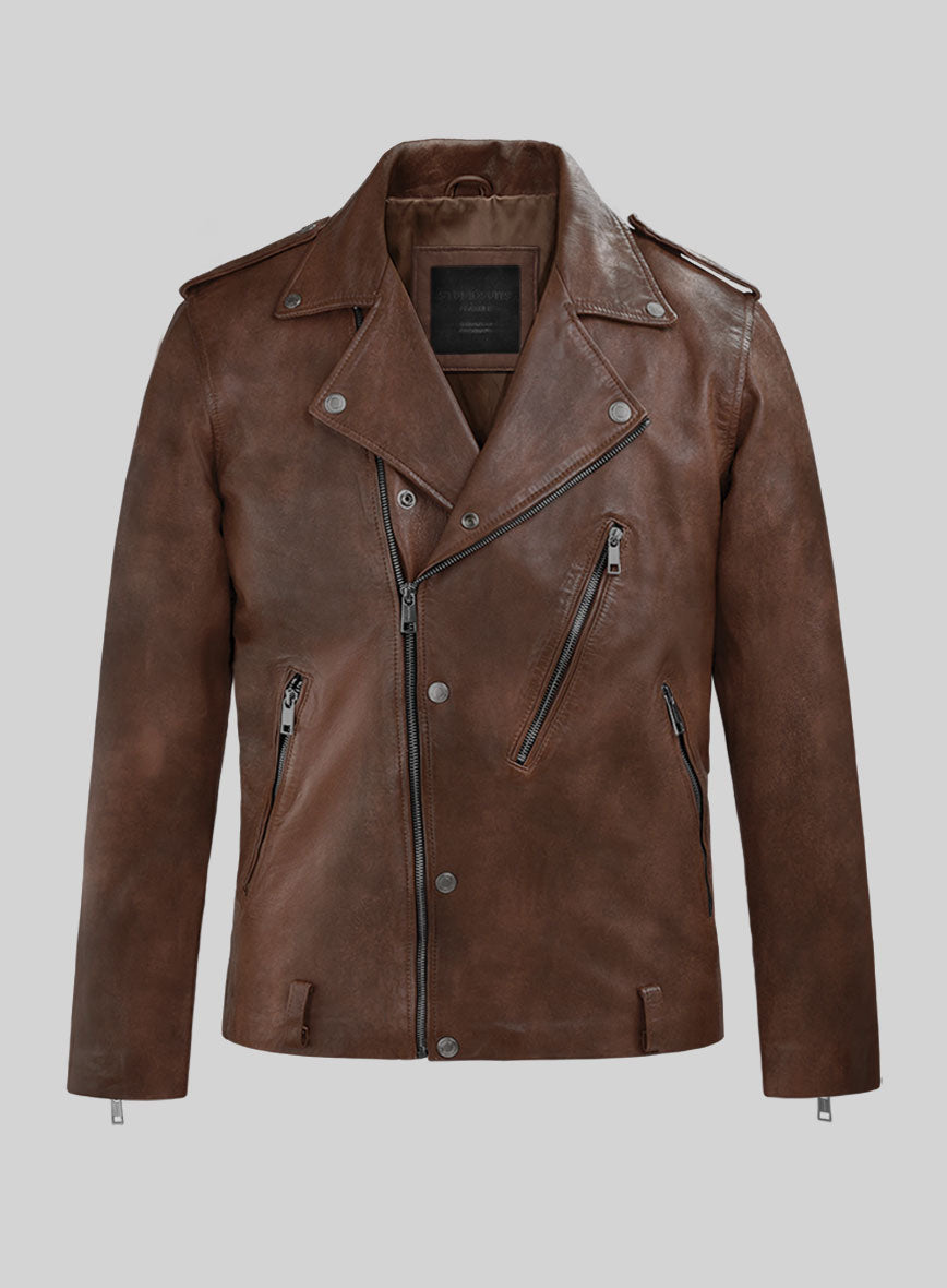 Stay ahead of the fashion curve with our luxurious Revolt Spanish Brown Biker Leather Jacket. Crafted from premium, tactile materials, this classic cover-up has been designed with the modern man in mind.