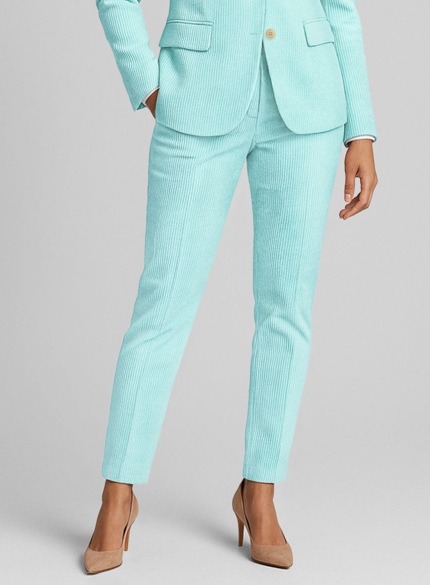 Stride into cloud-soft calm with our Women's Light Blue Corduroy Pants Light Blue Corduroy Pants. Tailored from plush corduroy, the pants showcase velvety vertical ridges that create a gentle, tactile richness with every step. The serene light-blue hue lends an airy, refreshing glow, while the clean, tapered cut shapes a naturally elongated, polished silhouette. Ideal for creative workdays, weekend strolls, or casual brunch plans.