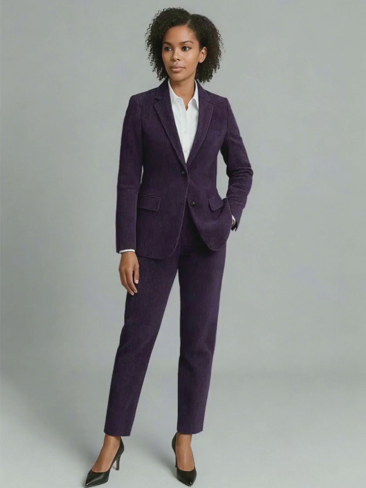 Indulge in the art of elevated dressing with our Women’s Purple Corduroy Suit — an ensemble that transforms classic tailoring into a statement of modern luxury. Crafted from plush, velvety corduroy in a deep, regal purple, this suit merges timeless sophistication with contemporary flair. Subtle vertical ridges create an elegant texture that catches the light with every movement, amplifying the richness of its hue. Perfect for high-stakes meetings, evening soirées, or moments when only the extraordinary will do.