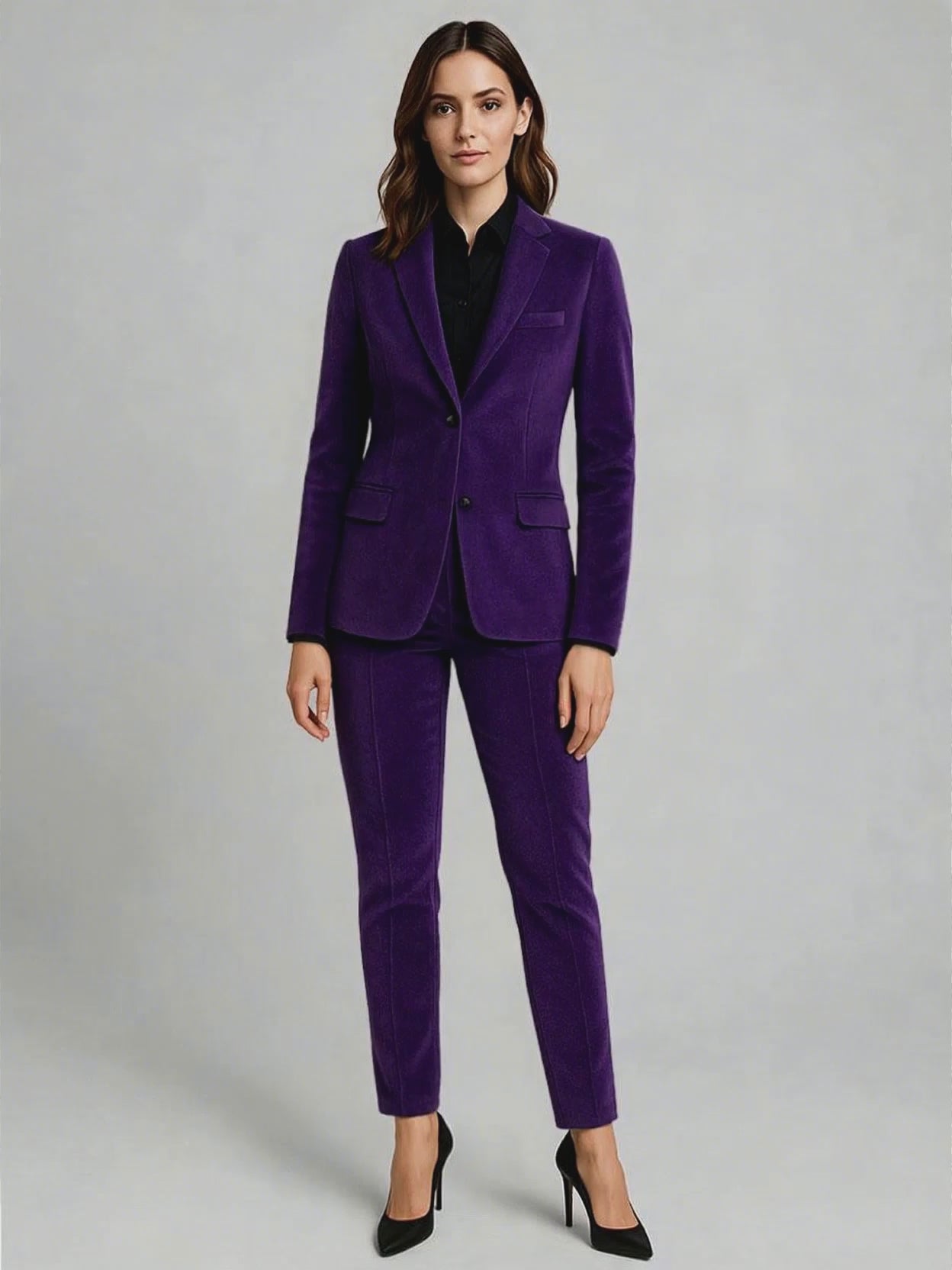 Let purple opulence drape your silhouette in our Women’s Purple Velvet Suit, a masterpiece where vivid color meets sculpted sophistication. Crafted from sumptuous pure cotton, its deep purple surface glows with lavish depth and velvety finesse. The solid design creates a commanding, fluid silhouette that moves with graceful structure and effortless poise. Perfect for soirées, festive evenings, or elevated celebrations that call for unforgettable radiance.